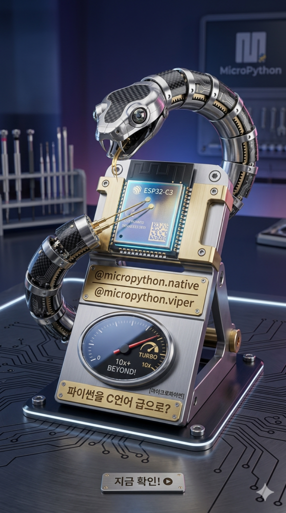 오늘은 코드 한 줄로 실행 속도를 드라마틱하게 올릴 수 있는 마법의 데코레이터, **@micropython.native**와 **@micropython.viper**에 대해 알아보겠습니다.