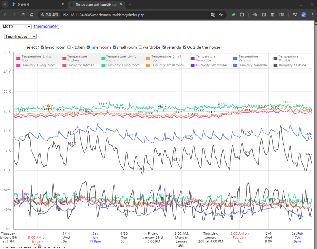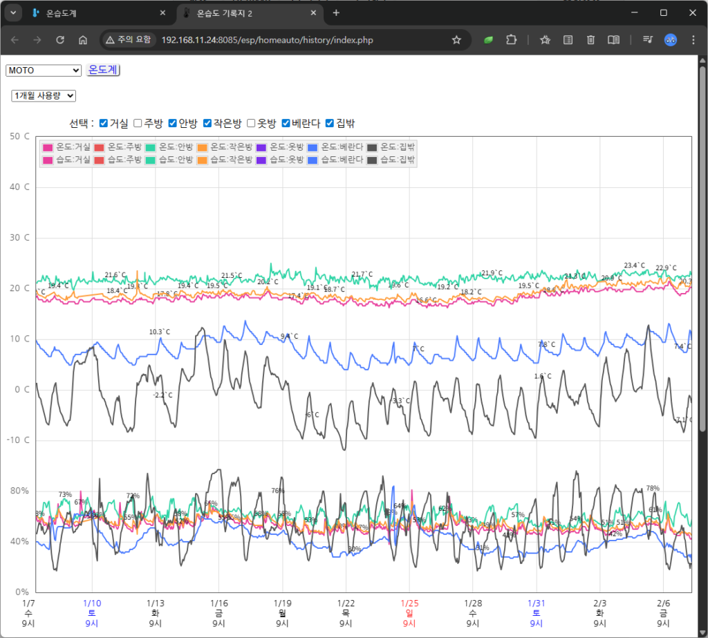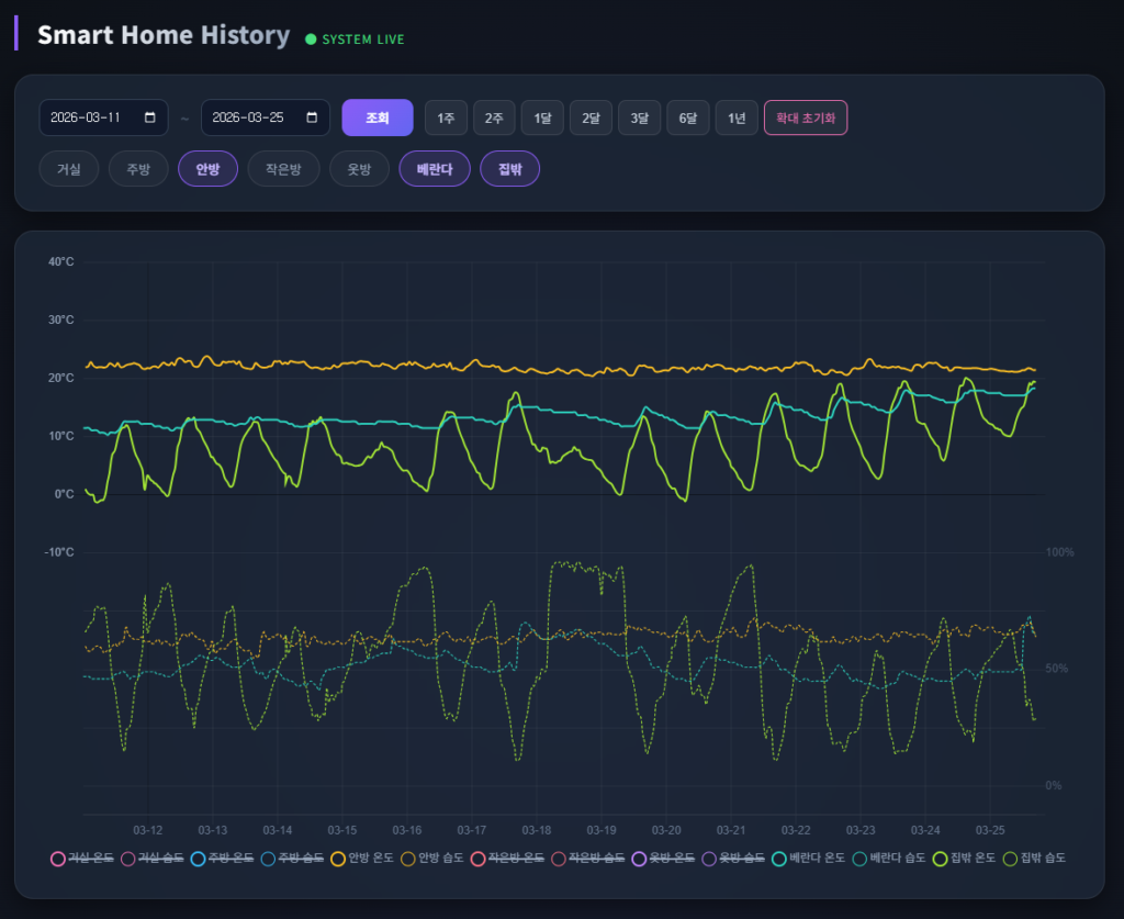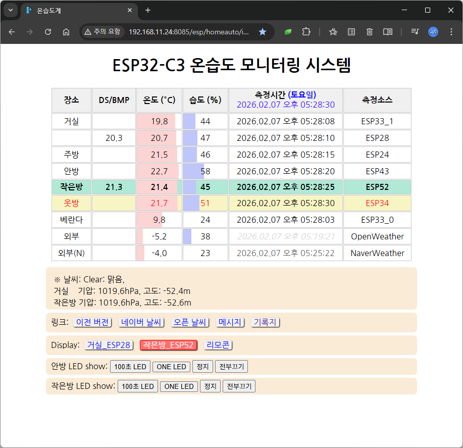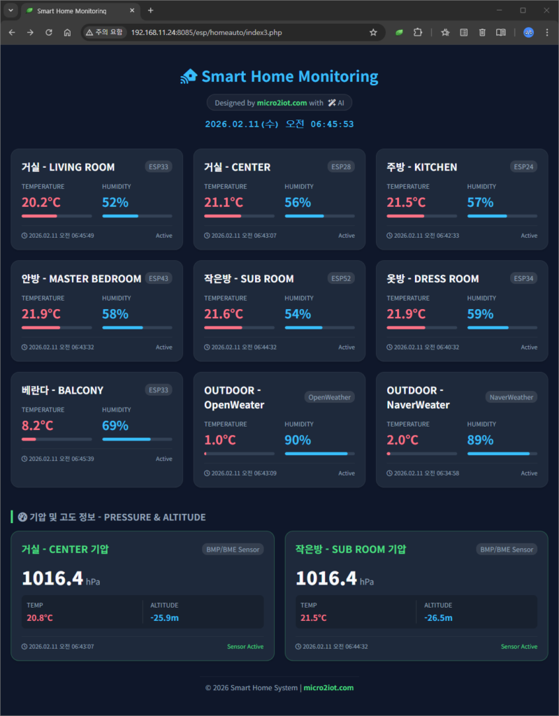 “아이 방의 습도는 적당한지, 부모님 방이 너무 춥지는 않은지 매번 문을 열어 확인하고 계셨나요? 이제 직접 만든 작은 센서들이 당신을 대신해 집안 구석구석을 살핍니다. **’방마다 온습도 모니터링’**은 소중한 사람들의 건강을 위해 시작된 가장 따뜻한 DIY 프로젝트입니다. 부품 하나, 코드 한 줄로 시작하는 우리 집의 작은 변화를 기록합니다.”