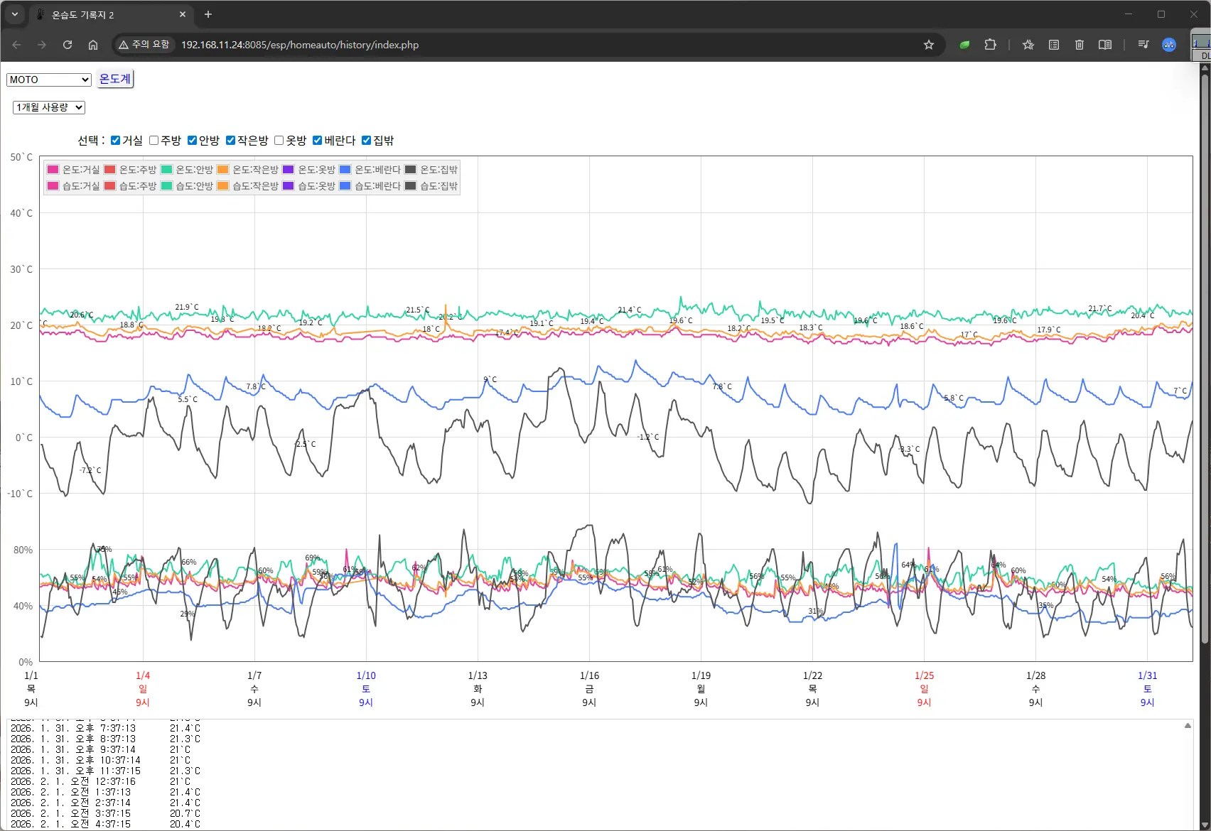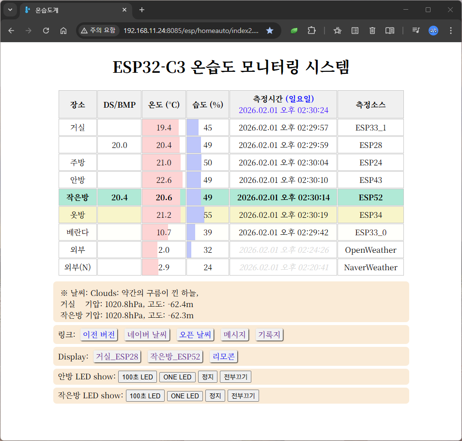 “아이 방의 습도는 적당한지, 부모님 방이 너무 춥지는 않은지 매번 문을 열어 확인하고 계셨나요? 이제 직접 만든 작은 센서들이 당신을 대신해 집안 구석구석을 살핍니다. **’방마다 온습도 모니터링’**은 소중한 사람들의 건강을 위해 시작된 가장 따뜻한 DIY 프로젝트입니다. 부품 하나, 코드 한 줄로 시작하는 우리 집의 작은 변화를 기록합니다.”