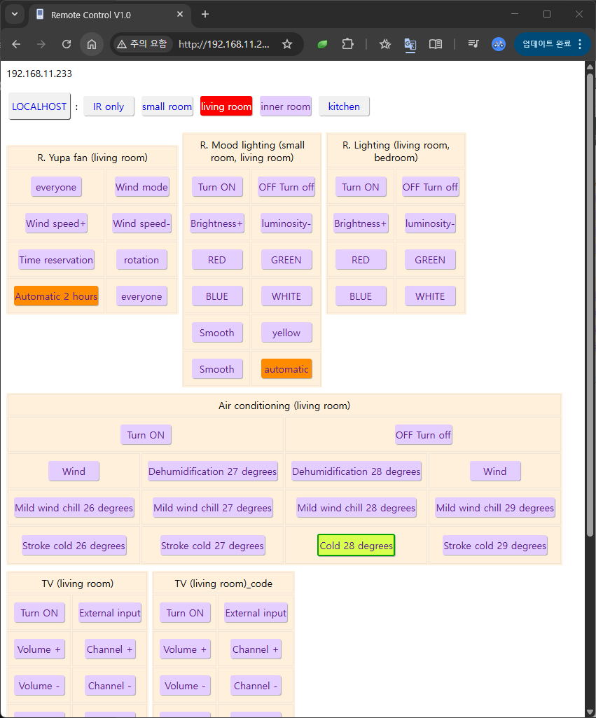 공간별 온습도 실시간 모니터링 및 가전 기기 원격 통합 제어