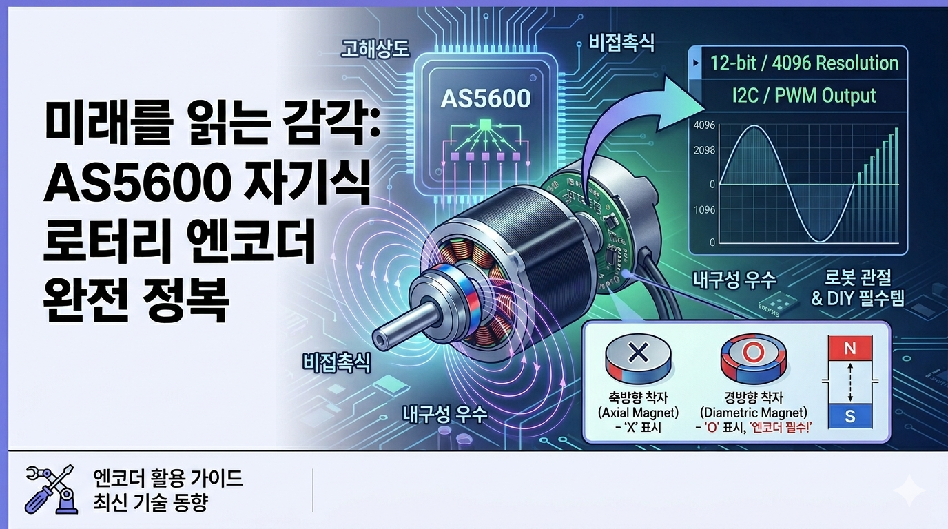 - 설계 편의성: 거대한 엔코더 디스크 대신 작은 자석(보통 지름 6mm 정도) 하나만 축 끝에 고정하면 끝납니다.