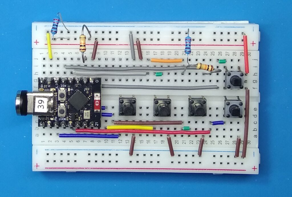• 스위치 5개: GPIO 4, 5, 6(고정 전압), GPIO 7, 8(증감) – 모두 풀업(Pull-up) 설정