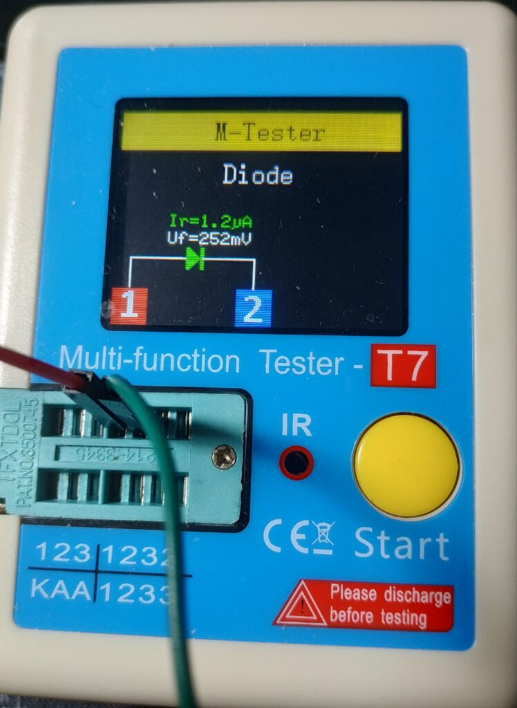 - 다이오드에 반대 방향으로 전압이 걸렸을 때 미세하게 흐르는 전류입니다. 8nA(나노암페어)는 매우 적은 양으로, 다이오드의 상태가 아주 건강하다는 것을 의미합니다.