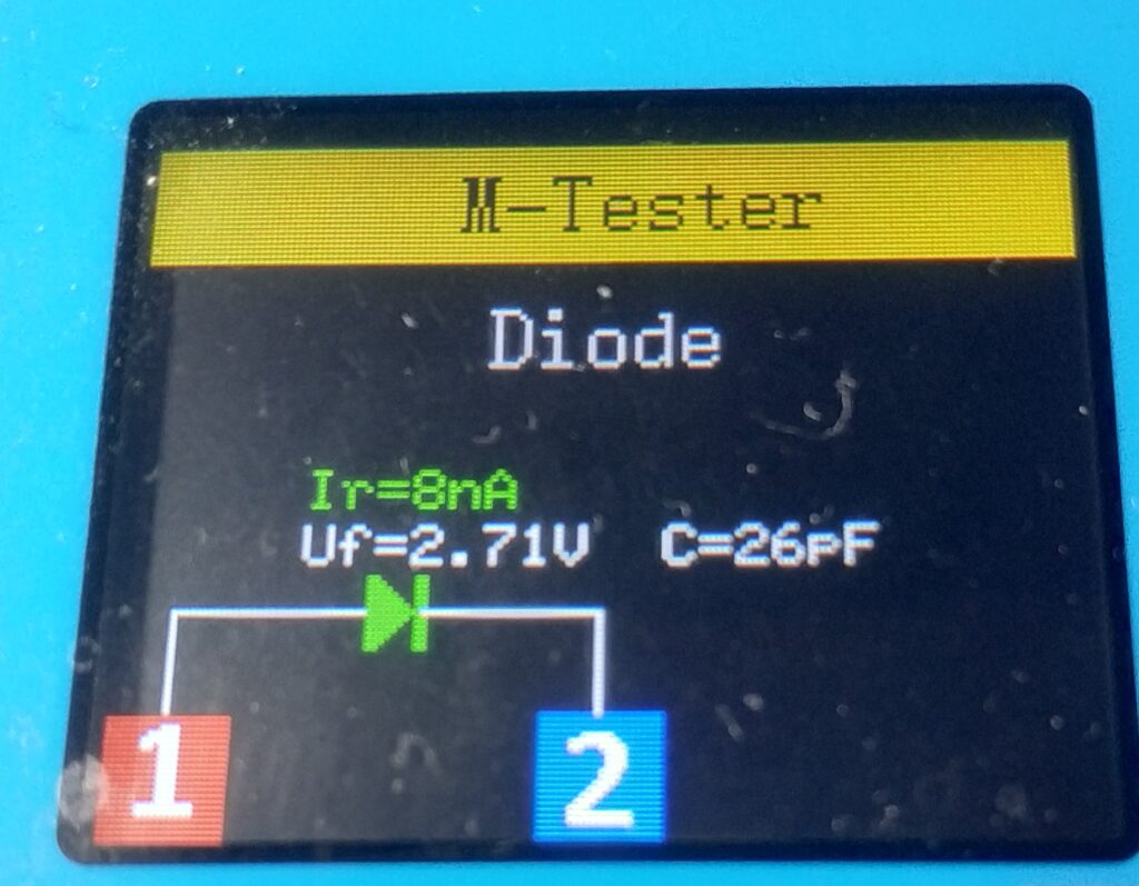 - Diode: 현재 측정 중인 부품이 ‘다이오드’임을 인식했다는 뜻입니다.