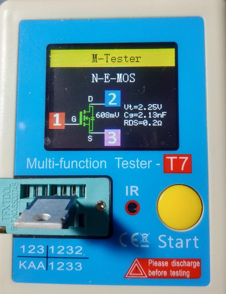팁: 만약 이 부품이 이전에 사용하던 IRLZ44N과 같은 로직 레벨 MOSFET이라면, 현재 측정된 Vt 값이 1V 미만으로 매우 낮게 나왔으므로 ESP32 같은 3.3V 전압으로도 충분히 직접 구동이 가능한 상태임을 확인할 수 있습니다.